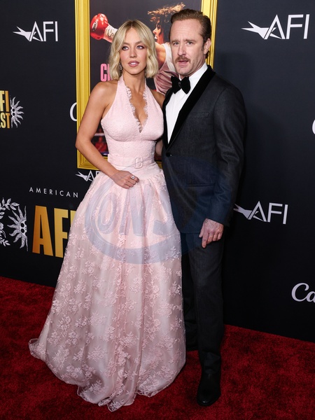 HOLLYWOOD, LOS ANGELES, CALIFORNIA, USA - OCTOBER 25: American actress and producer Sydney Sweeney wearing a custom Miu Miu dress and American actor Ben Foster arrive at the 2025 AFI (American Film Institute) Fest Presented By Canva - Premiere Of Black Bear's 'Christy' held at the TCL Chinese Theatre IMAX on October 25, 2025 in Hollywood, Los Angeles, California, United States., Credit:Xavier Collin / Avalon