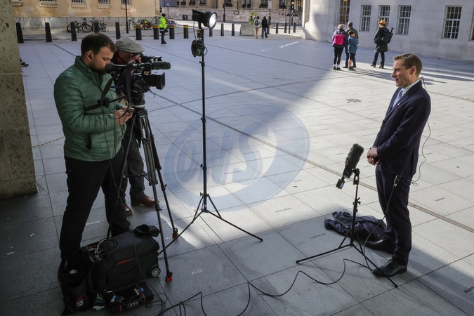 Chris Philp at the BBC for the Sunday morning media round, London, UK