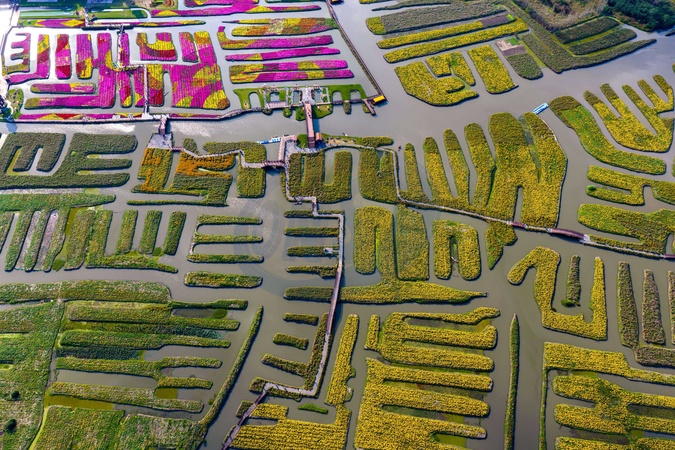 A view of a chrysanthemum show in wetland park in Xinghua in east China's Jiangsu province Friday, Oct. 24, 2025., Credit:HE JINGHUA / Avalon