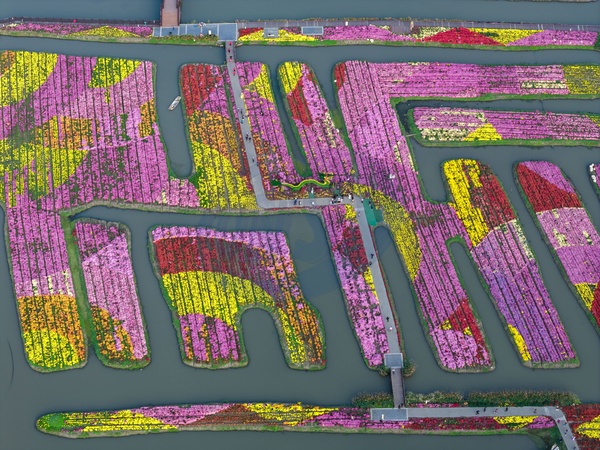 A view of a chrysanthemum show in wetland park in Xinghua in east China's Jiangsu province Friday, Oct. 24, 2025., Credit:HE JINGHUA / Avalon