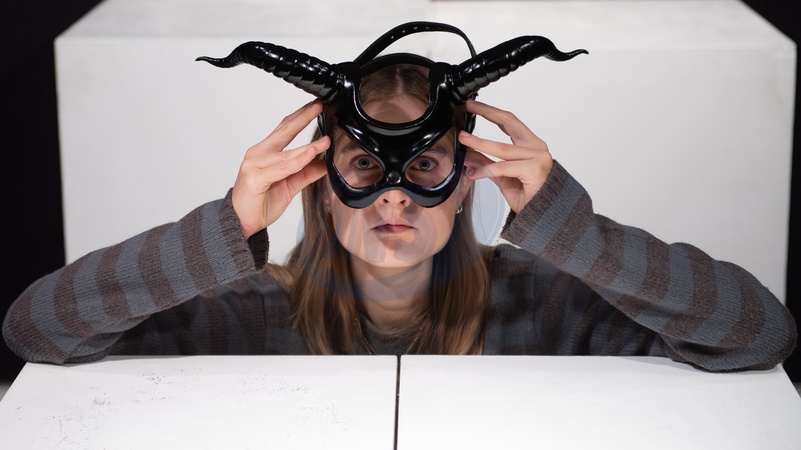 A staff member views 'Ozzy Osbourne: Black horned mask worn for Rolling Stone UK, designed by Cecilio Castrillo, ' (2019) - (£1k - £1.5k) which is on auction at Bonhams 'The Uncanny' online Sale until 29 October 2025 at Bonhams in London, England, UK on Monday 27 October, 2025., Credit:Justin Ng / Avalon