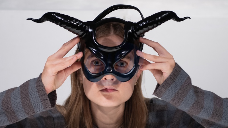 A staff member views 'Ozzy Osbourne: Black horned mask worn for Rolling Stone UK, designed by Cecilio Castrillo, ' (2019) - (£1k - £1.5k) which is on auction at Bonhams 'The Uncanny' online Sale until 29 October 2025 at Bonhams in London, England, UK on Monday 27 October, 2025., Credit:Justin Ng / Avalon