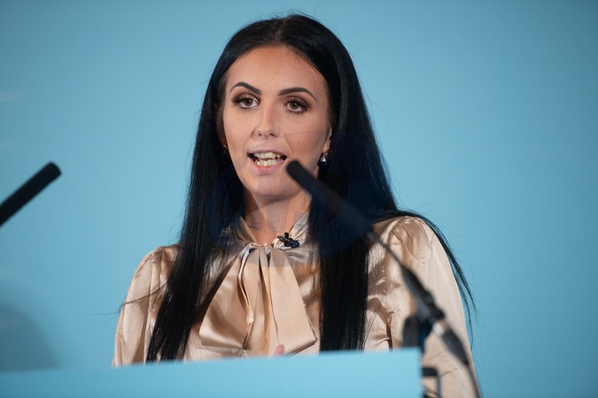 Ellie-Ann Reynolds - a child sexual abuse survivor (and who resigned from The national grooming gangs inquiry). speaks at a Reform UK Press Conference on Grooming Gangs at The Royal Horseguards Hotel in London, England, UK on Monday 27 October, 2025., Credit:Justin Ng / Avalon