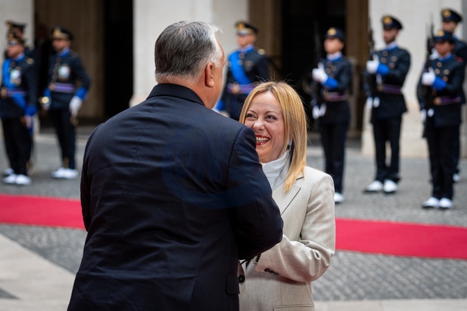 Italian Prime Minister Giorgia Meloni receives the Prime Minister of Hungary, Viktor Orbán at Palazzo Chigi in Rome, Italy on 27 October 2025.
