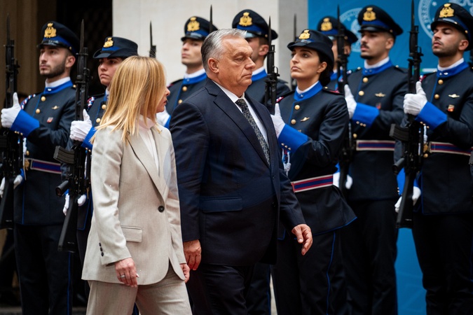 Italian Prime Minister Giorgia Meloni receives the Prime Minister of Hungary, Viktor Orbán at Palazzo Chigi in Rome, Italy on 27 October 2025.