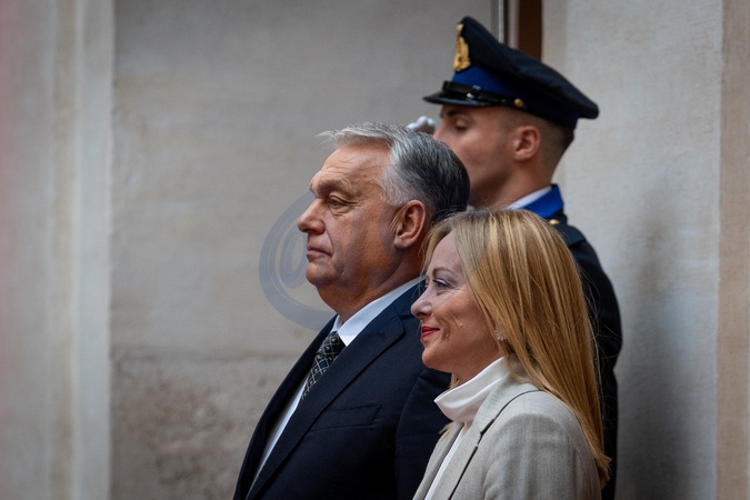Italian Prime Minister Giorgia Meloni receives the Prime Minister of Hungary, Viktor Orbán at Palazzo Chigi in Rome, Italy on 27 October 2025.