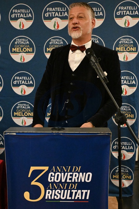 October 25, 2025, Prato, Brothers of Italy initiative to celebrate three years of the Meloni government. Pictured is Alessandro Giuli, Minister of Culture., Credit:Aleandro Biagianti / Avalon