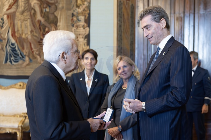 October 27, 2025, Rome, Quirinale Palace. President of the Republic Sergio Mattarella with Andrea Sironi, President of the AIRC Foundation, Anna Mondino, Scientific Director of the AIRC Foundation, and Maria Rescigno, Vice Rector and Research Delegate (Scientific Deputy Director for Basic Research) at Humanitas., Credit:Francesco Ammendola / Avalon