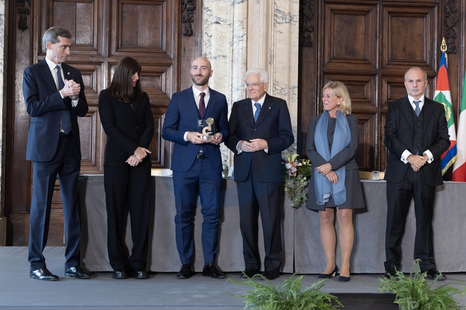 October 27, 2025, Rome, Quirinale Palace. President of the Republic Sergio Mattarella presents the biennial AIRC "Beppe Della Porta" Award to Professor Renato Ostuni, Associate Professor of Histology at the Vita-Salute San Raffaele University of Milan., Credit:Francesco Ammendola / Avalon