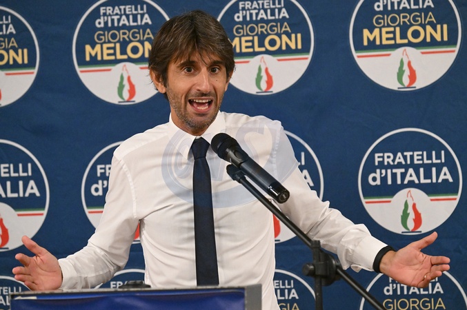 October 25, 2025, Prato, Brothers of Italy initiative to celebrate three years of the Meloni government. Pictured: Giovanni Donzelli, Credit:Aleandro Biagianti / Avalon
