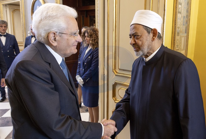 October 27, 2025, Rome. President Sergio Mattarella with Ahmed Al Tayeb, Grand Imam of Al Azhar, Credit:Paul Giandotti / Avalon