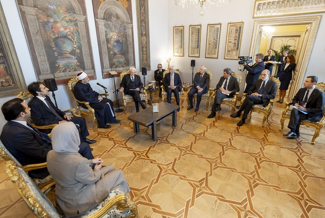 October 27, 2025, Rome. President Sergio Mattarella with Ahmed Al Tayeb, Grand Imam of Al Azhar, Credit:Paul Giandotti / Avalon