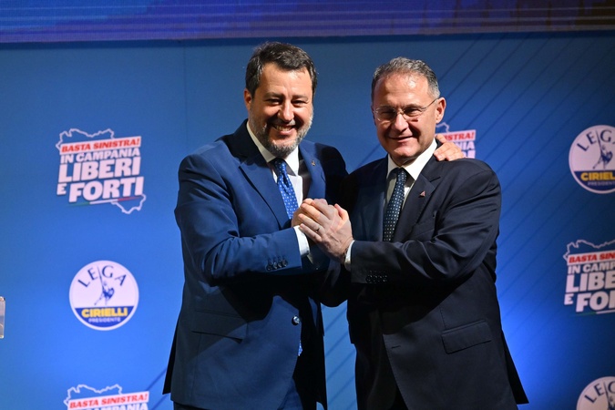 October 26, 2025, Naples, the League campaign for the Campania regional elections. Pictured is Transport Minister and League leader Matteo Salvini with candidate Edmondo Cirielli., Credit:Felice De Martino / Avalon