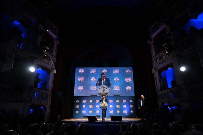 October 26, 2025, Naples, the League campaigns for the Campania regional elections. Pictured is Transport Minister and League leader Matteo Salvini., Credit:Felice De Martino / Avalon