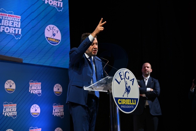 October 26, 2025, Naples, the League campaigns for the Campania regional elections. Pictured is Transport Minister and League leader Matteo Salvini., Credit:Felice De Martino / Avalon