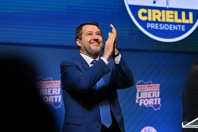 October 26, 2025, Naples, the League campaigns for the Campania regional elections. Pictured is Transport Minister and League leader Matteo Salvini., Credit:Felice De Martino / Avalon