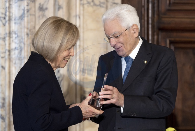 October 27, 2025, Rome. President Sergio Mattarella awarded the AIRC Special Prize "Believing in Research" to Donatella Hartmann, an AIRC donor., Credit:Paul Giandotti / Avalon