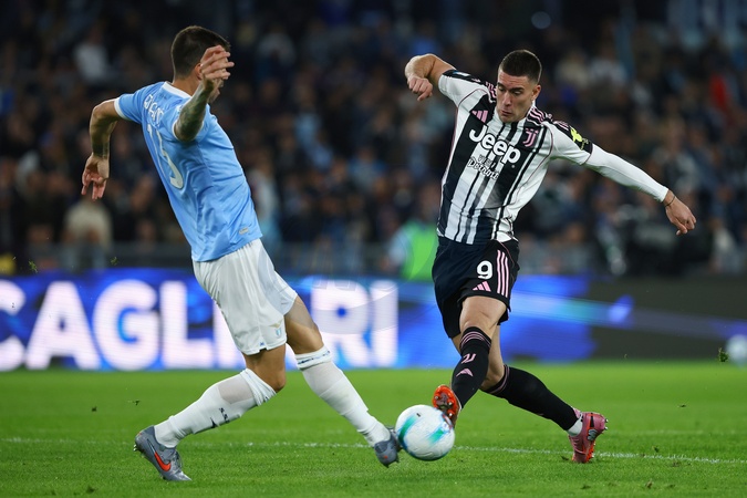 26/10/2025 Rome, Serie A 2025-26 football championship Lazio-Juventus, pictured Alessio Romagnoli and Dusan Vlahovic, Credit:Federico Proietti / Avalon