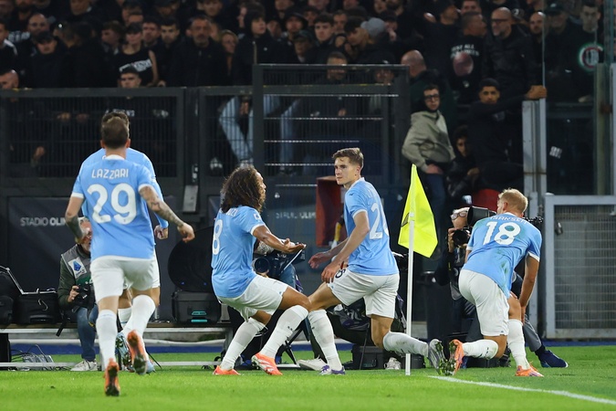 26/10/2025 Rome, Serie A 2025-26 football championship Lazio-Juventus, in the photo Toma Basic celebrates with his teammates after the 1-0 goal, Credit:Federico Proietti / Avalon