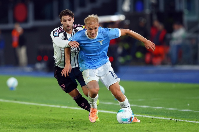 26/10/2025 Rome, Serie A 2025-26 football championship Lazio-Juventus, pictured Manuel Locatelli and Gustav Isaksen, Credit:Federico Proietti / Avalon