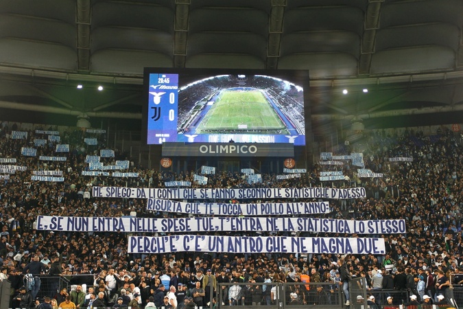 26/10/2025 Rome, Serie A 2025-26 football championship Lazio-Juventus, in the photo protest banners in the Curva Nord, Credit:Federico Proietti / Avalon
