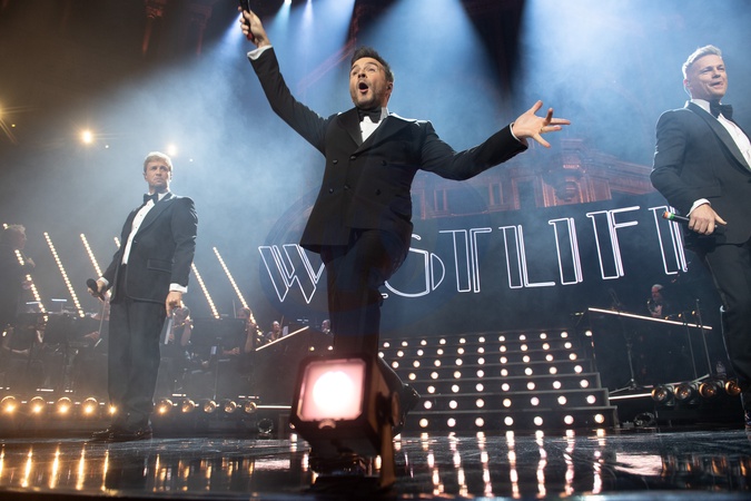 (L-R) - Kian Egan, Shane Filan and Nicky Byrne of Irish pop band Westlife perform with the Royal Philharmonic Concert Orchestra, at Royal Albert Hall, London, England, UK on Monday 27 October 2025 as part of Their 25th Anniversary World Tour., Credit:Justin Ng / Avalon