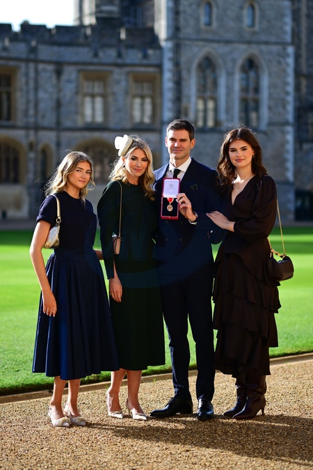 Sir James Anderson receives knighthood for services to cricket with his family Daniella Lloyd, Ruby Luxe and Lola Rose, Credit:Victoria Jones/Shutterstock / Avalon