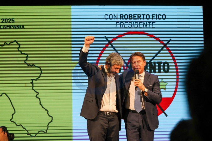 27/10/2025 Napoli, presentazione della lista dei candidati alla regione Campania del Movimento 5 Stelle. Nella foto il Presidente del M5S Giuseppe Conte e Roberto Fico, candidato alla presidenza della Campania, Credit:Fabio Sasso / Avalon