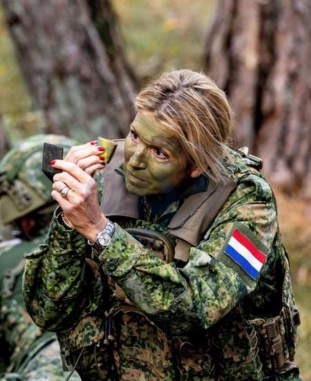 Hierden, The Netherlands, 2025-10-28 14:19:30HIERDEN, October 29, 2025, Royal Netherlands Marechaussee. Queen Máxima visits a military training ground at the Royal Netherlands Marechaussee's training center in Harderwijk. The visit focuses on recruitment and selection. PHOTO: NLBeeld/Patrick van Emst, Credit:Avalon