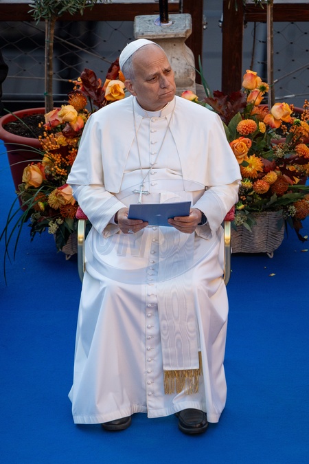 Pope Leo XIV attends an inter-religious meeting to pray for peace inside the Colosseum in Rome, Italy on 28 October 2025., Credit:Stefano Costantino TTL / POOL / Avalon