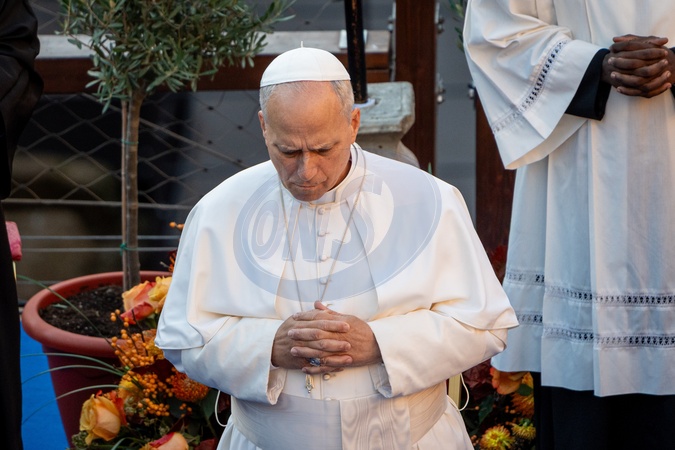 Pope Leo XIV attends an inter-religious meeting to pray for peace inside the Colosseum in Rome, Italy on 28 October 2025., Credit:Stefano Costantino TTL / POOL / Avalon