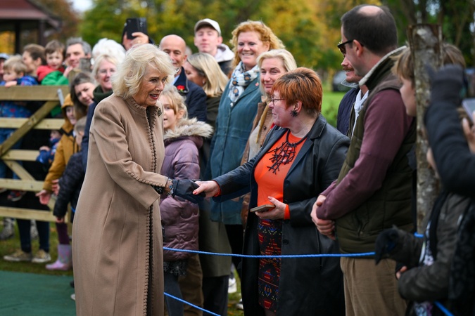 BROMHAM, ENGLAND - OCTOBER 28: Queen Camilla meets people during her visit to Bromham Community Hub on October 28, 2025 in Bromham, England. The hub aims to reduce isolation and support mental health by providing a flexible community space for village residents., Credit:Finnbarr Webster / Avalon
