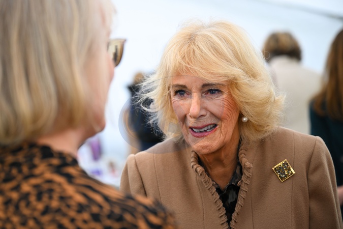 BROMHAM, ENGLAND - OCTOBER 28: Queen Camilla meets people during her visit to Bromham Community Hub on October 28, 2025 in Bromham, England. The hub aims to reduce isolation and support mental health by providing a flexible community space for village residents., Credit:Finnbarr Webster / Avalon