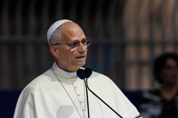 Pope Leo XIV and other religious leaders attend the closing ceremony of the International Meeting of Dialogue and Prayer for Peace of the Community of Sant'Egidio at the Colosseum, in Rome, Italy, 28 October 2025., Credit:Francesco Fotia / Avalon
