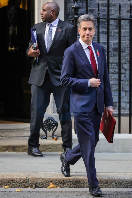 London, UK. 28th Oct 2025. Ed Miliband, Secretary of State for Energy Security and Net Zero, MP Doncaster North and David Lammy, Deputy Prime Minister, Lord Chancellor, Secretary of State for Justice, MP Tottenham. Ministers attend the government cabinet meeting in Downing Street, London, UK, today taking place in the afternoon., Credit:Imageplotter / Avalon
