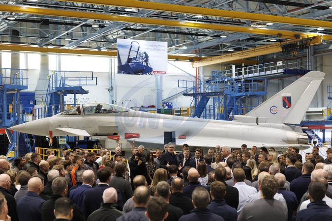 28/10/2025. Preston, United Kingdom. Prime Minister Keir Starmer meets with BAE Systems Warton staff as Türkiye buys 20 UK Typhoon fighter jets securing 20,000 UK jobs., Credit:Lauren Hurley / Avalon