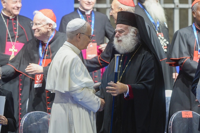 Italy, Rome, Colosseum, 28 October, 2025: Closing ceremony of the 'Dare for Peace' event organized by the Community of Sant'Egidio. In the photo Pope Leo XIV and Greek Orthodox Patriarch of Jerusalem Theophilos III, Credit:Stefano Carofei / Avalon