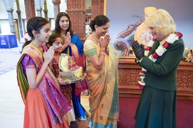 Their Majesties The King and Queen visited ‘Neasden Temple', to celebrate the Temple's 30th anniversary..The King and Queen observed spiritual ceremonies. Later the royal couple met.members of the congregation. Pool Picture Arthur Edwards, Credit:Arthur Edwards / Avalon