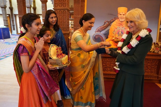 Their Majesties The King and Queen visited ‘Neasden Temple', to celebrate the Temple's 30th anniversary..The King and Queen observed spiritual ceremonies. Later the royal couple met.members of the congregation., Credit:Unknown / Avalon