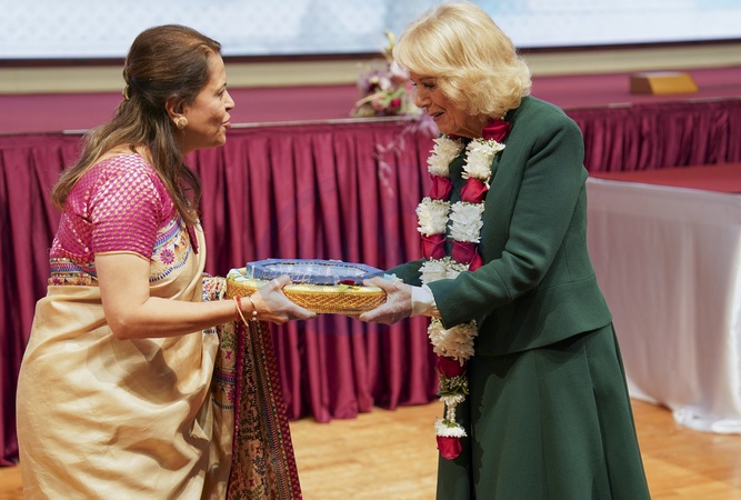 Their Majesties The King and Queen visited ‘Neasden Temple', to celebrate the Temple's 30th anniversary..The King and Queen observed spiritual ceremonies. Later the royal couple met.members of the congregation., Credit:Arthur Edwards / Avalon