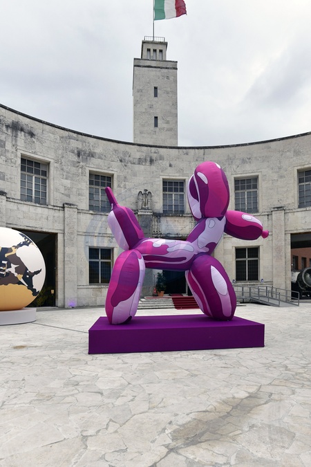 The Museo del Genio (Historical and Cultural Institute of the Italian Army's Engineer Corps) offers itself as a new cultural venue in the capital. View POP AIR. Ugo Nespolo presents eight enormous inflatable sculptures in the museum courtyard, each reproducing famous works by renowned artists: Venus de Milo, 2nd century BC; The Thinker by Auguste Rodin, 1902; Maman by Louise Bourgeois, 1999; Sphere within a Sphere by Arnaldo Pomodoro, 1991; Paloma by Fernando Botero, 1990; Head by Amedeo Modigliani, 1912; Balloon Dog by Jeff Koons, 2000; and Yellow Pumpkin by Yayoi Kusama, 1994. Rome, 30th of October 2025, Credit:Mimmo Frassineti / Avalon