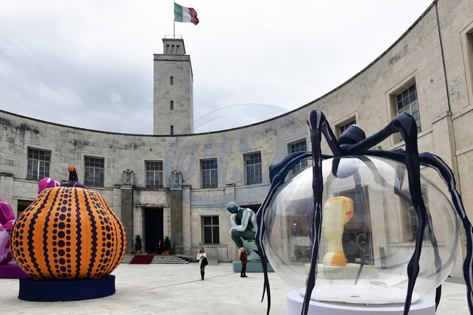 The Museo del Genio (Historical and Cultural Institute of the Italian Army's Engineer Corps) offers itself as a new cultural venue in the capital. View POP AIR. Ugo Nespolo presents eight enormous inflatable sculptures in the museum courtyard, each reproducing famous works by renowned artists: Venus de Milo, 2nd century BC; The Thinker by Auguste Rodin, 1902; Maman by Louise Bourgeois, 1999; Sphere within a Sphere by Arnaldo Pomodoro, 1991; Paloma by Fernando Botero, 1990; Head by Amedeo Modigliani, 1912; Balloon Dog by Jeff Koons, 2000; and Yellow Pumpkin by Yayoi Kusama, 1994. Rome, 30th of October 2025, Credit:Mimmo Frassineti / Avalon