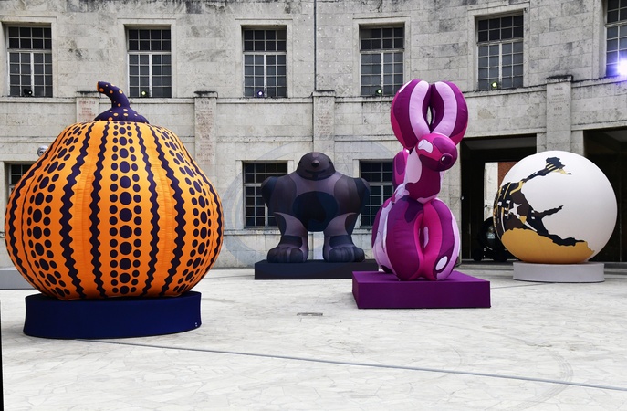 The Museo del Genio (Historical and Cultural Institute of the Italian Army's Engineer Corps) offers itself as a new cultural venue in the capital. View POP AIR. Ugo Nespolo presents eight enormous inflatable sculptures in the museum courtyard, each reproducing famous works by renowned artists: Venus de Milo, 2nd century BC; The Thinker by Auguste Rodin, 1902; Maman by Louise Bourgeois, 1999; Sphere within a Sphere by Arnaldo Pomodoro, 1991; Paloma by Fernando Botero, 1990; Head by Amedeo Modigliani, 1912; Balloon Dog by Jeff Koons, 2000; and Yellow Pumpkin by Yayoi Kusama, 1994. Rome, 30th of October 2025, Credit:Mimmo Frassineti / Avalon