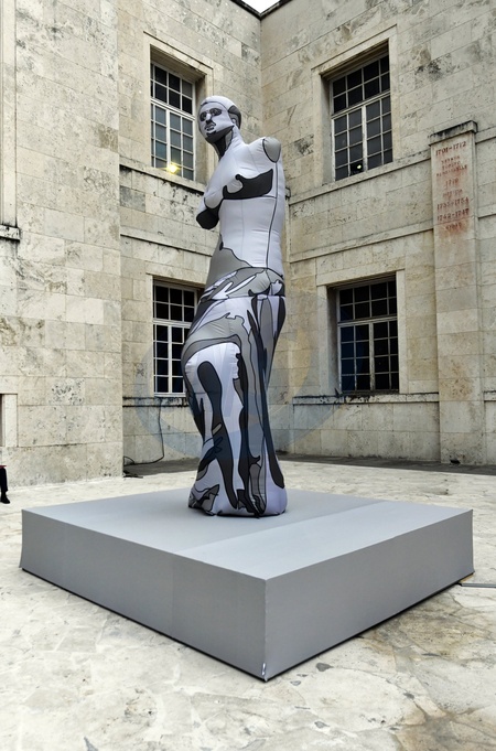 The Museo del Genio (Historical and Cultural Institute of the Italian Army's Engineer Corps) offers itself as a new cultural venue in the capital. View POP AIR. Ugo Nespolo presents eight enormous inflatable sculptures in the museum courtyard, each reproducing famous works by renowned artists: Venus de Milo, 2nd century BC; The Thinker by Auguste Rodin, 1902; Maman by Louise Bourgeois, 1999; Sphere within a Sphere by Arnaldo Pomodoro, 1991; Paloma by Fernando Botero, 1990; Head by Amedeo Modigliani, 1912; Balloon Dog by Jeff Koons, 2000; and Yellow Pumpkin by Yayoi Kusama, 1994. Rome, 30th of October 2025, Credit:Mimmo Frassineti / Avalon