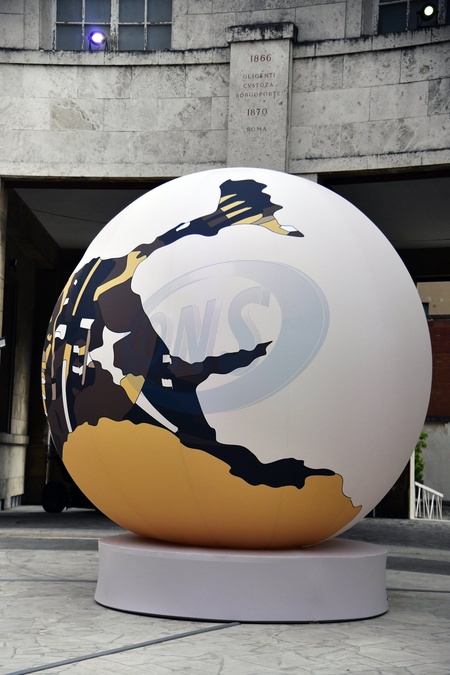 The Museo del Genio (Historical and Cultural Institute of the Italian Army's Engineer Corps) offers itself as a new cultural venue in the capital. View POP AIR. Ugo Nespolo presents eight enormous inflatable sculptures in the museum courtyard, each reproducing famous works by renowned artists: Venus de Milo, 2nd century BC; The Thinker by Auguste Rodin, 1902; Maman by Louise Bourgeois, 1999; Sphere within a Sphere by Arnaldo Pomodoro, 1991; Paloma by Fernando Botero, 1990; Head by Amedeo Modigliani, 1912; Balloon Dog by Jeff Koons, 2000; and Yellow Pumpkin by Yayoi Kusama, 1994. Rome, 30th of October 2025, Credit:Mimmo Frassineti / Avalon
