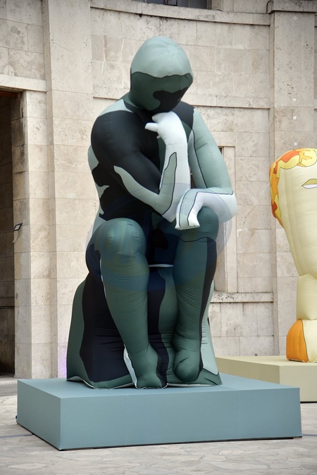 The Museo del Genio (Historical and Cultural Institute of the Italian Army's Engineer Corps) offers itself as a new cultural venue in the capital. View POP AIR. Ugo Nespolo presents eight enormous inflatable sculptures in the museum courtyard, each reproducing famous works by renowned artists: Venus de Milo, 2nd century BC; The Thinker by Auguste Rodin, 1902; Maman by Louise Bourgeois, 1999; Sphere within a Sphere by Arnaldo Pomodoro, 1991; Paloma by Fernando Botero, 1990; Head by Amedeo Modigliani, 1912; Balloon Dog by Jeff Koons, 2000; and Yellow Pumpkin by Yayoi Kusama, 1994. Rome, 30th of October 2025, Credit:Mimmo Frassineti / Avalon