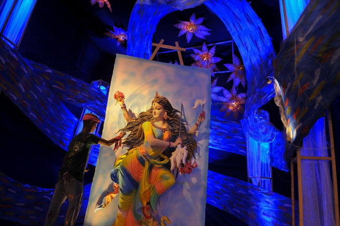Chattogram, Bangladesh – Beautifully adorned idols of Goddess Jagaddhatri are displayed on decorated stages across Chattogram city as devotees celebrate the Jagaddhatri Puja with devotion and festivity., Credit:Md Rafayat Haque Khan / Avalon