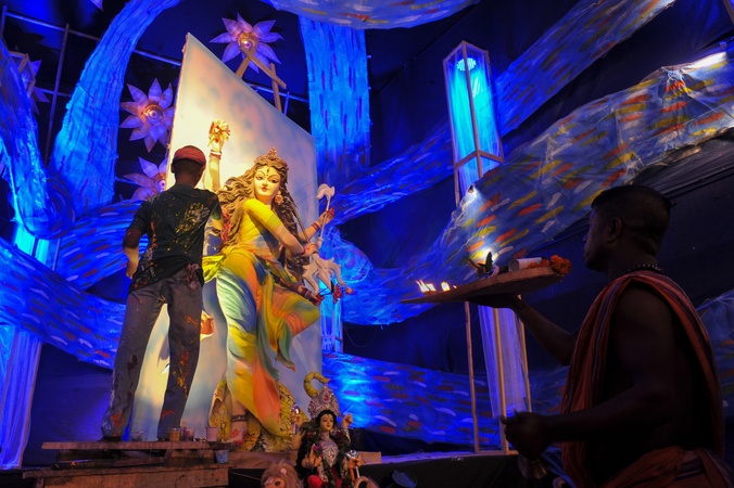 Chattogram, Bangladesh – Beautifully adorned idols of Goddess Jagaddhatri are displayed on decorated stages across Chattogram city as devotees celebrate the Jagaddhatri Puja with devotion and festivity., Credit:Md Rafayat Haque Khan / Avalon