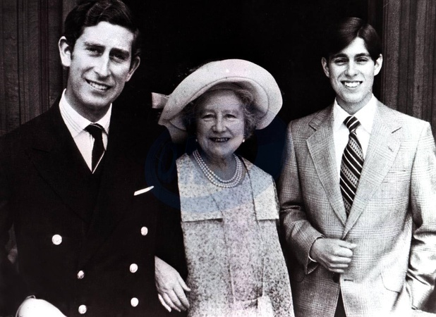 From Left to Right:-HRH PRINCE CHARLES: HM QUEEN ELIZABETH THE QUEEN MOTHER:HRH PRINCE ANDREW.Seen at The Royal Lodge, Windsor.Bandphoto Agency PhotoB39 037869 01.08.1975, Credit:© Band Photo / uppa.co.uk / Avalon