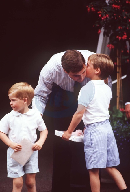 HRH DUKE OF YORK with Left: HRH PRINCE HARRY and Right: HRH PRINCE WILLIAM Outside the Portland Hospital in London following the birth of the Duke's daughter Princess Beatrice COMPULSORY CREDIT: UPPA/Photoshot Photo CRP 284185 10.08.1988